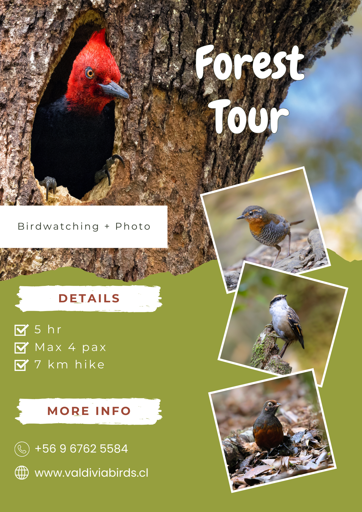 Description: Activity focused on the observation, identification and/or photography of birds in the forests of the Valdivian Rainforest.
